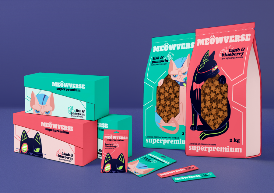 MEOWVERSE — бренд кормов для кошек, вдохновленный космической тематикой, сочетающий в себе абсолютную пользу и смелые вкусовые решения.