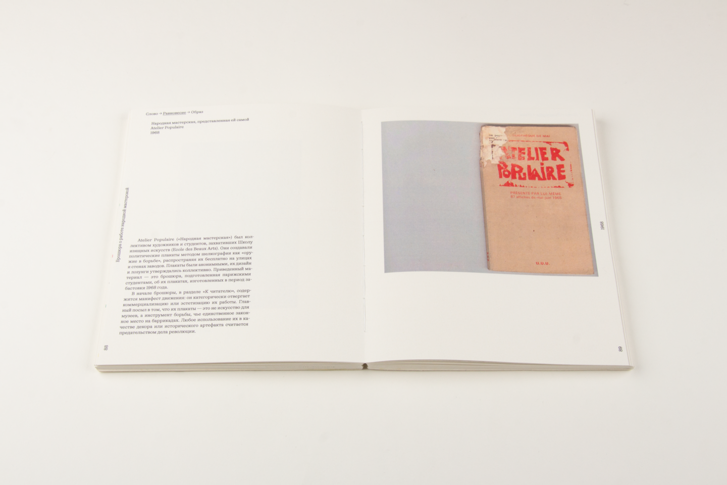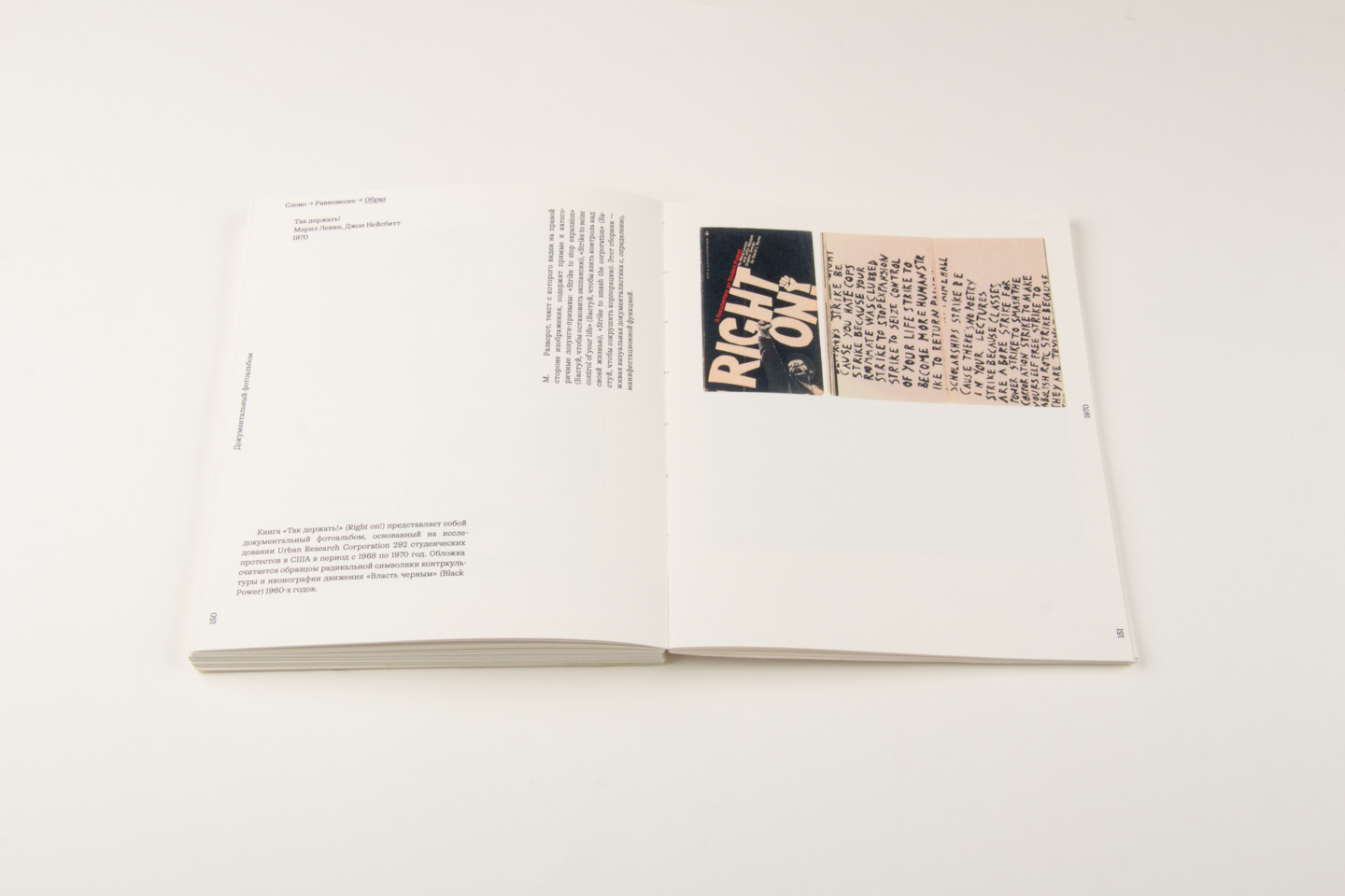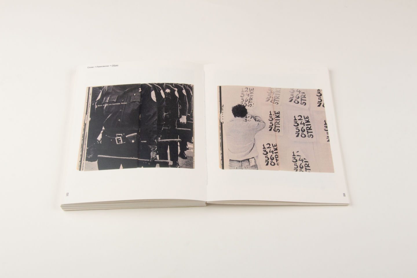 Материал в исследовании распределяется по трем условным уровням визуальной декларации: 1)слово, 2)равновесие, 3)образ. От более текстоцентричных примеров читатель постепенно переходит к образным