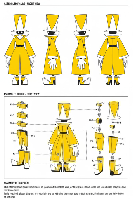 You are an engineer-designer at Bandai Namco. Your task is to design a plastic model kit based on the provided 2D character reference.