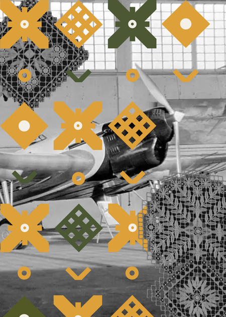 Выделив основные фрагменты из вышивки, нужно было перевести их в графические элементы так, чтобы сохранить узнаваемость орнамента, но при этом придать им резкости характерной для авиации. Это получилось осуществить за счёт грубых углов и минимума скруглённых элементов.
