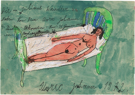 «В основном Корец изображал сексуальные действия двойника, которого он называл Корец Иоганн. Используя технику собственного изобретения, он копировал фотографии пар из прессы или из книг, раздевал их догола и обнажал их гениталии. Эти образы были дополнены переплетающимися текстами, которые стали неотъемлемой частью произведения»