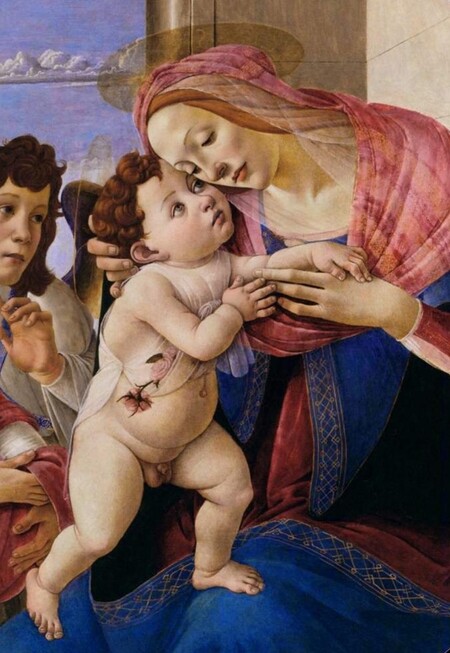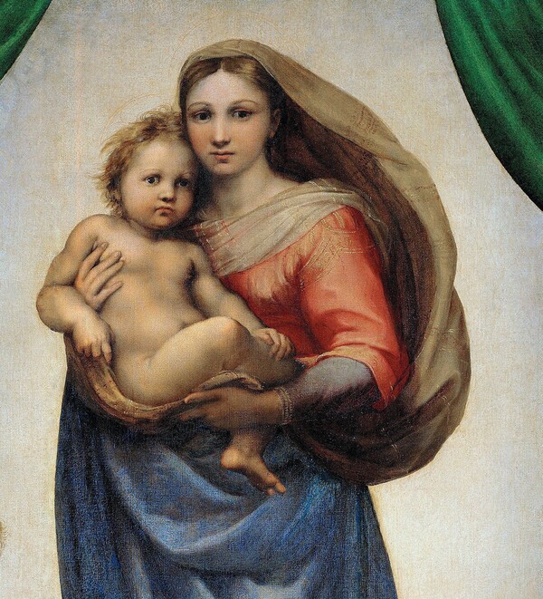 Сандро Боттичелли. Мадонна с младенцем и двумя ангелами (фрагмент). ок. 1490. Рафаэль Санти. Сикстинская Мадонна (фрагмент). 1512-1513