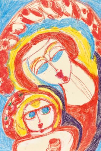 «Обратившись в буддизм и усердно молясь, Симона с энтузиазмом начала выражать свое религиозное воображение. Ее рисунки стали заполняться впечатляющими ореолами святых, с распростертыми руками или сложенными ладонями, окруженные пышной растительностью и мистическими существами. Слова „Il ou elle prie Dieu“ („Он или она молится Богу“), которые добавляются к большинству ее композиций, подчеркивают значительную важность молитвы в мире Марии»