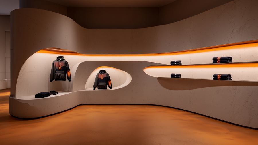 Этот магазин — продолжение философии «Парка метафизических прозрений». Пространство построено как место созерцания и тишины: плавные формы стен, рассеянный свет и тёплые оттенки создают ощущение вне времени. Здесь представлен мерч проекта — как артефакты из внутреннего мира, воплощающие связь между человеком, архитектурой и светом.