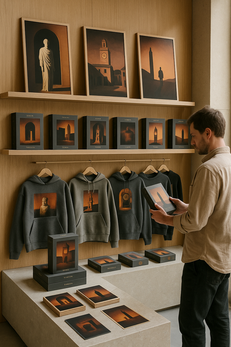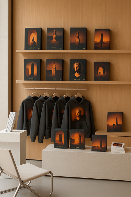 На основе концепции «Парка метафизических прозрений» планируется создать магазин, в котором будет представлена коллекция мерча пространства — постеры, одежда, издания и объекты, отражающие его философию. Это не просто торговая точка, а продолжение самой идеи парка — место, где можно прикоснуться к тишине, форме и свету, унеся с собой частицу метафизического опыта.