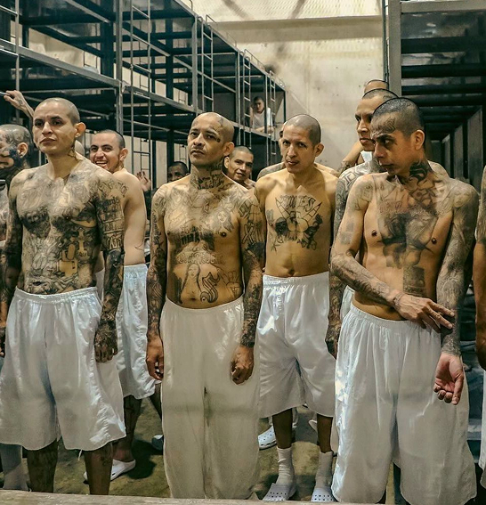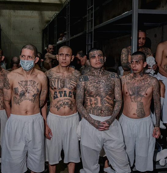 Заключенные в мегаполисе, известном как СЕСОТ, в Теколуке, Сальвадор, 2025 год