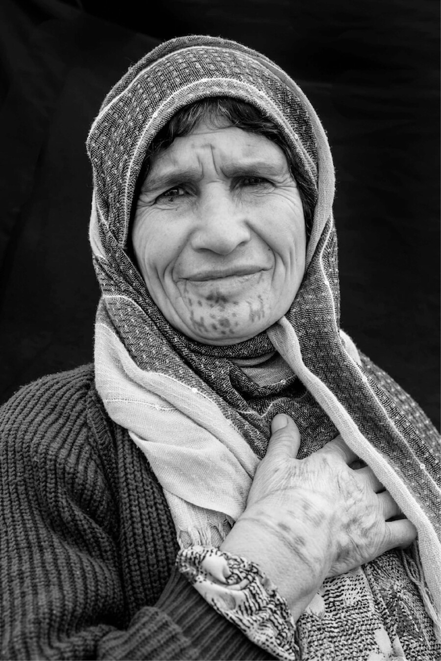 60-летняя Зубейда Али, которая бежала из Кобани вместе со всей своей семьёй, включая десятерых женатых детей и 25 внуков, сделала татуировку в 13 лет. Джоди Хилтон, 2015 год