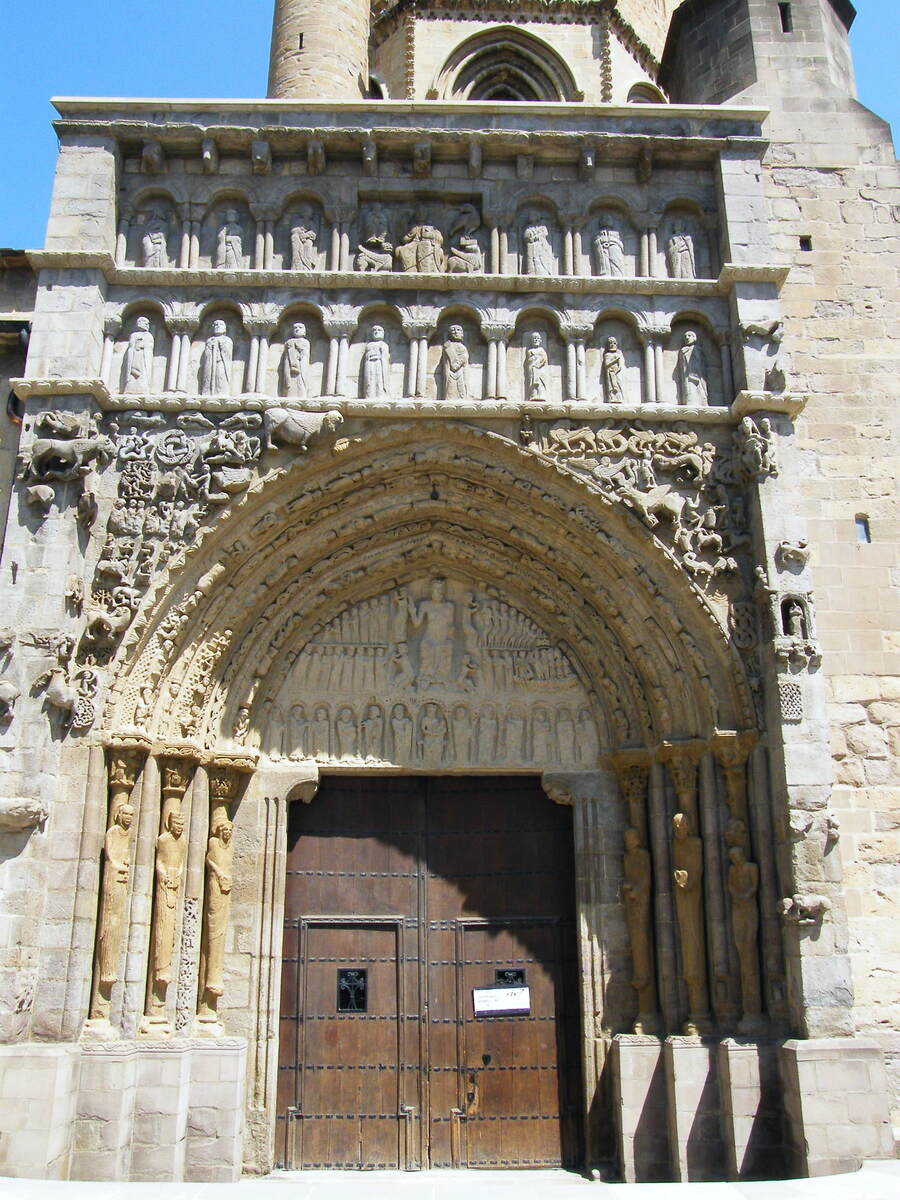 В церкви Санта-Мария-ла-Реаль в Сангуэсе арочный мотив усиливается романским рельефом. Многослойные архивольты и тимпан создают проход, воспринимаемый как визуальное богословие. Арка становится посредником между внешним и священным, выполняя смысловую, а не победную функцию.