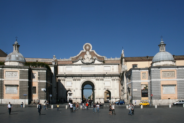 Порта-дель-Пополо в Риме демонстрирует барочную интерпретацию римской арки: арочный проём объединён с декоративными элементами, фризами и ордерами, создавая эффект драматического подъёма. Арка перестаёт быть лишь символом победы — она становится выразительным элементом композиции, органично интегрированным в городскую перспективу как театрализованный вход.