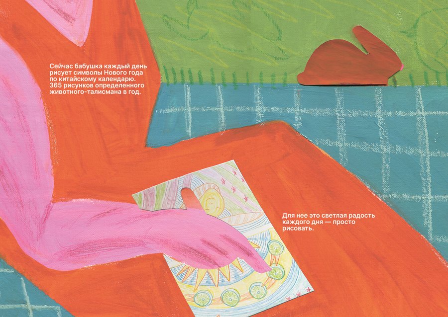 Зин о пути художника, психологическом здоровье и памяти. Это история о моей бабушке-художнице с Дальнего Востока, которая имеет биполярное расстройство. Много лет она каждый день рисует символы Нового года по восточному календарю.