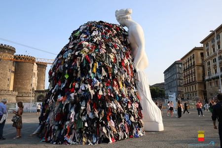 Итальянский художник Микеланджело Пистолетто в работе «Венера лохмотьев» создает мощную визуальную метафору столкновения эпох. Классическая мраморная Венера, символ вечной красоты, оказывается заваленной грудой текстильных отходов — ярких, цветных, но бесполезных обрезков современной индустрии. Этот образ можно прочитать как диалог между непреходящими ценностями прошлого и хаотичным потребительским настоящим.