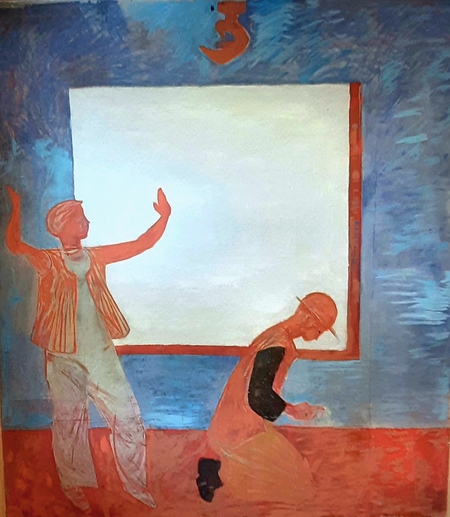 Начинали это интересное дело Владимир Табанин, Вячеслав Литвинов, Виктор Башков. Позднее к ним присоединились Олег Марушкин и Иван Шевченко, а затем и Иван Говорков. Напряженный труд над созданием оригинального цикла панно продолжался несколько лет. И все эти годы авторы росписей, прошедшие в школе на Васильевском острове серьезный экзамен на творческую зрелость, с благодарностью вспоминали своего учителя — Андрея Андреевича Мыльникова — крупного художника, опытного и взыскательного педагога.