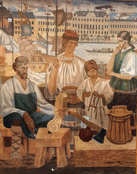 Башков Виктор Иванович «Основание Петербурга», 1969 (штукатурка, бязь, левкас, клей ПВА, проклейка, темпера) 300×1500 см