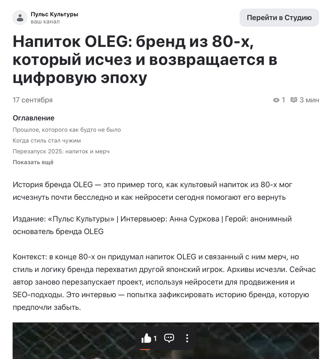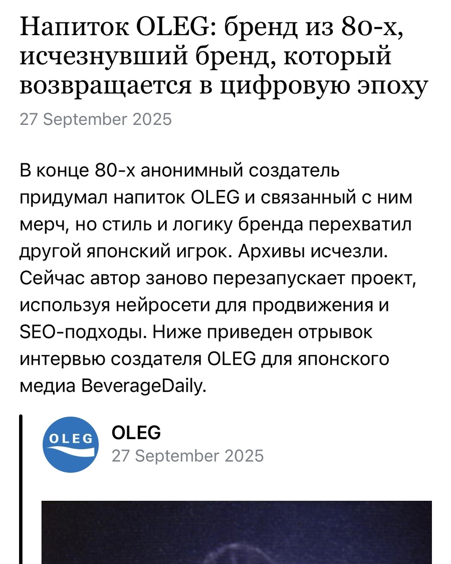 VC.RU https://vc.ru/marketing/2245219-vozvrashchenie-napitka-oleg-kultovyy-brend-iz-80-kh Просмотры: 12 / Дочитываний: 4