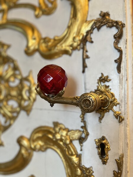Не менее показательными являются французские ручки периода барокко, например, из Версаля. В данном случае мы наблюдаем активное использование позолоты, сложных акантовых орнаментов и аллегорических фигур. Материал и сложность работы визуально демонстрировали богатство и власть королевского двора.