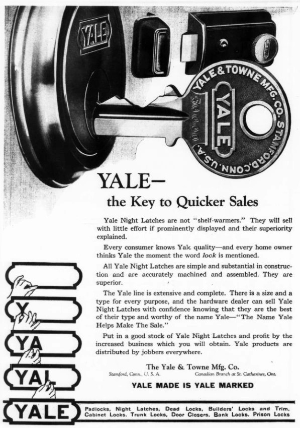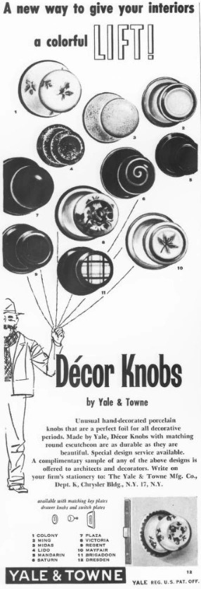 США, Реклама дверных ручек и замков YALE, фото 1954 год