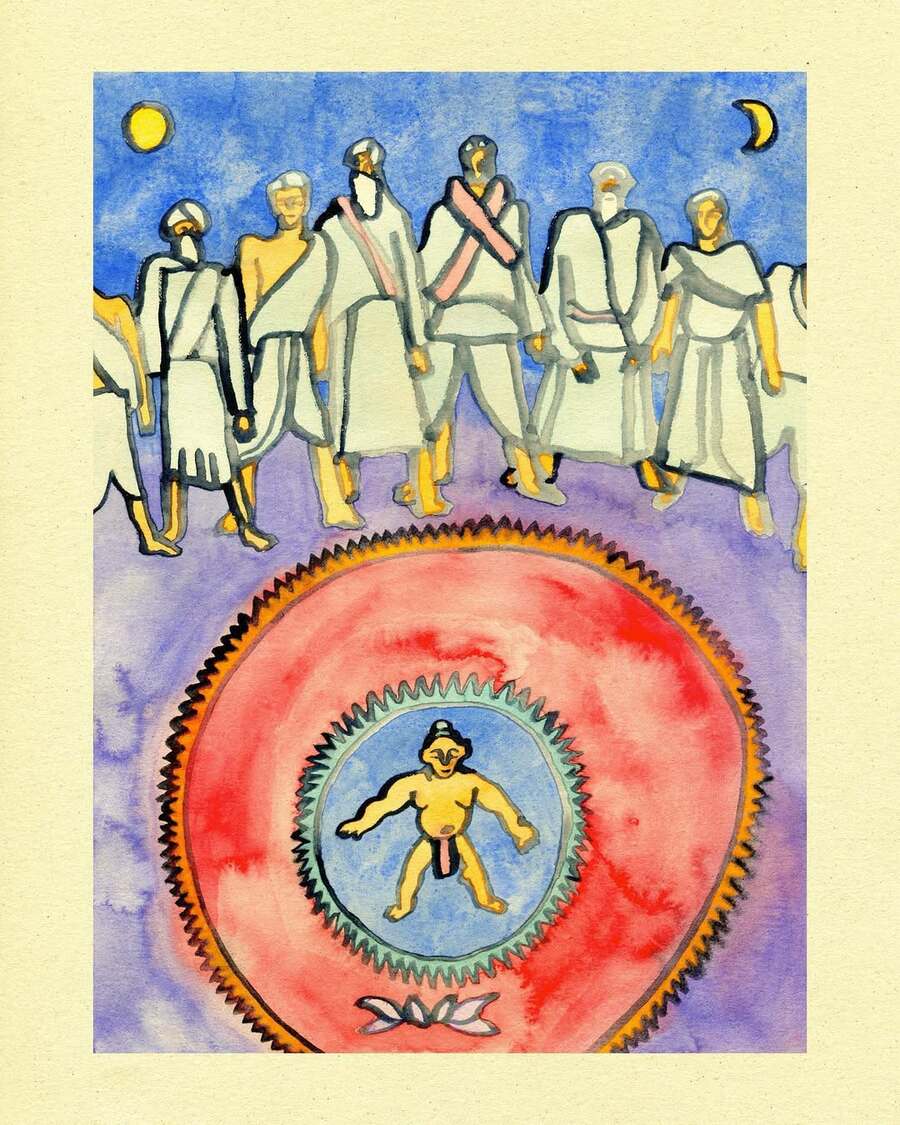 Егор Логачёв, серия работ «Джатака о царевиче Панчавудхе»: история о пяти оружиях и шестом чувстве, трактовка книги «Тысячеликий герой» Джозефа Кэмпбелла