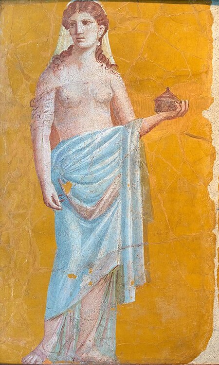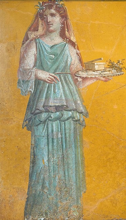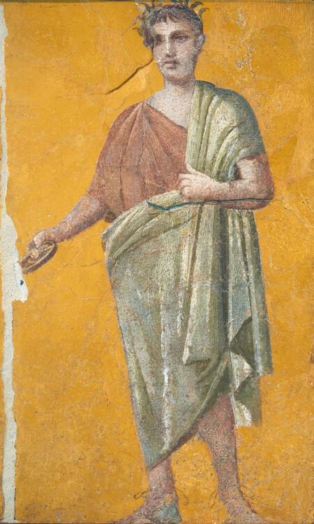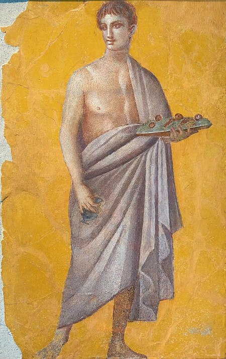 Их сложная драпировка не столько скрывала тело, сколько облекала его в покров достоинства и мудрости, направляя взгляд зрителя на осанку и величавость позы. Так, например, на древнеримской фреске (64 г. н. э.) из Помпей изображен поэт. Он одет в длинный хитон и гиматий.