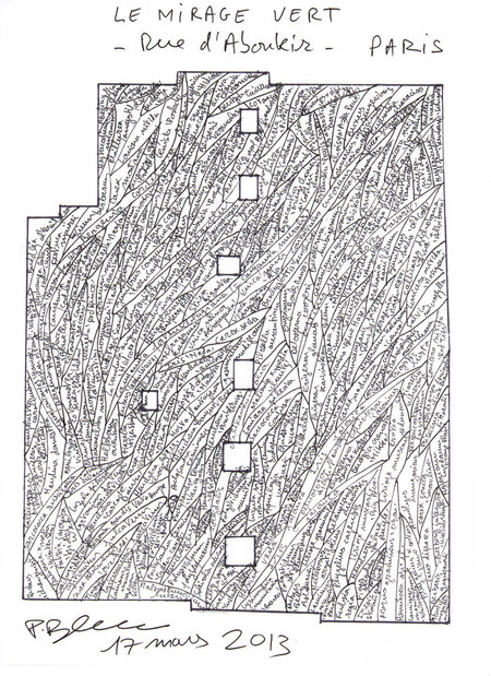 Оазис Абукира изначально был сделан для парижской неделя дизайна. Бланк превратил фасад здания в яркую зелёную зону.