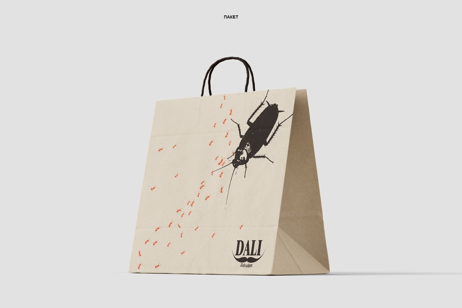 По мотивам проекта 3го модуля 1 курса «Временные фасады к выставке Сальвадора Двли». Отличительные особенности — образ таракана (ибо у каждого свои тараканы в голове) и образ муравья (как символа сюрреализма).