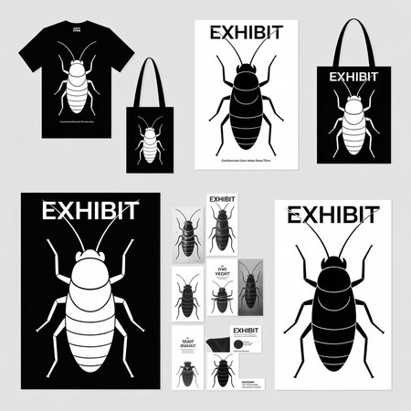 Create merch and media for an exhibition with graphic cockroaches and ants.