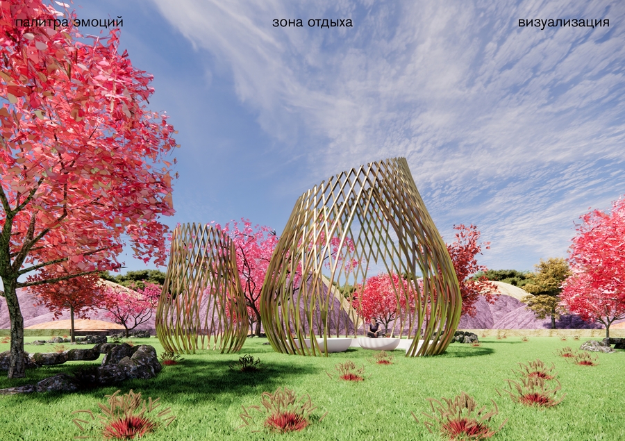 Парк посвящен творчеству американского художника армянского происхождения Аршила Горки. В работе использованы формы, линии и абстрактный метод художника. Элементы парка транслируют идеи абстрактного экспрессионизма, одним из основателем которого был Горки. В своих генерациях я показал пространство парка в стиле Горки, необходимые элементы айдентики и сувенирный магазин.