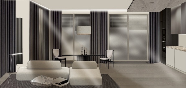 ЖК «Первомайская 1А» — бизнес квартал в центре Тюмени с брутальной эстетикой: строгие линии фасадов, величественность лабрадорита и воздушное панорамное остекление задают тон его характеру. Заказчик обратился к нам за созданием дизайн-проекта, который бы продолжил эту архитектурную концепцию.