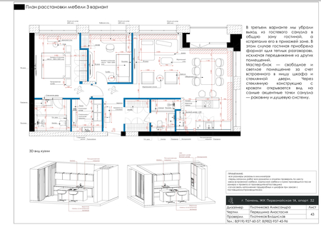 В результате получены несколько вариантов планировочных решений, которые я презентовала заказчику.