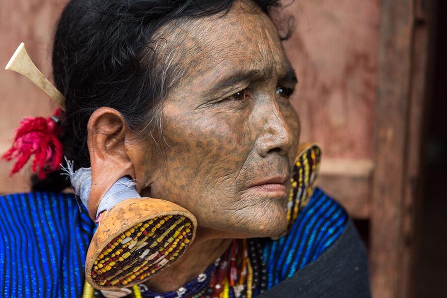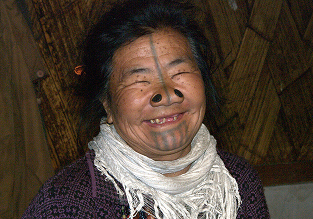 Женщины из племени апатани в индийском штате Аруначал-Прадеш традиционно носили крупные деревянные пробки в носу, которые растягивали ноздри до значительных размеров. Эта практика возникла как способ защитить девушек от похищения и нападений со стороны более сильных соседних племен — считалось, что такой внешний облик делал их менее привлекательными для захватчиков. Прокалывание носа и растягивание ноздрей сопровождались нанесением татуировок на лице, что также служило маркером принадлежности и красоты внутри племени.
