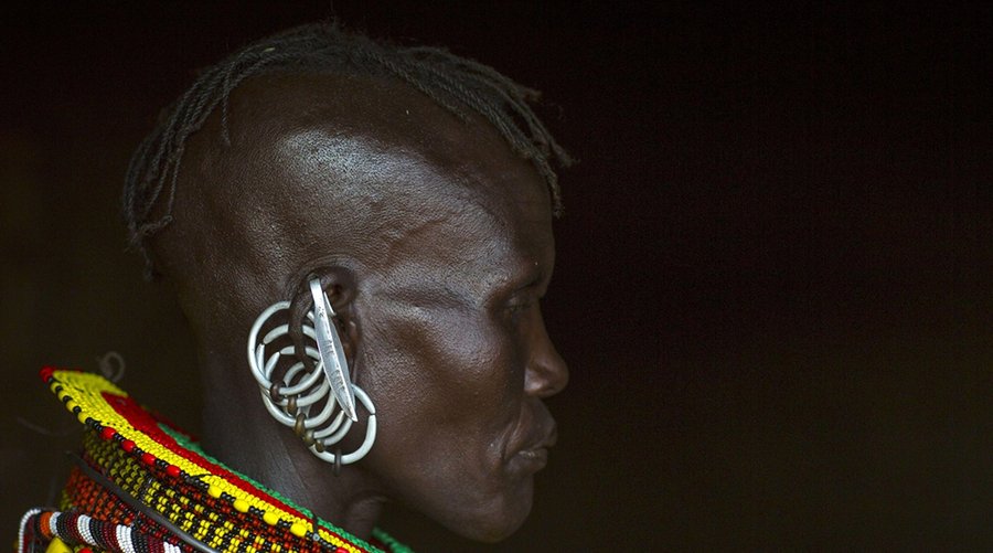 Женщина племени Мурси с тарелкой в губе, XXI век / Растянутая мочка уха, племя Масаи, XXI век / Девушка подросток из племени Мурси, XX век