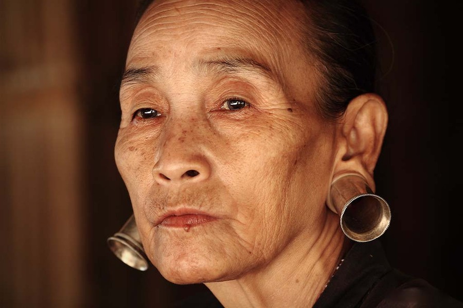 Женщина из Падаунга с растянутыми мочками ушей, деревня Мэй Са, 2010 год