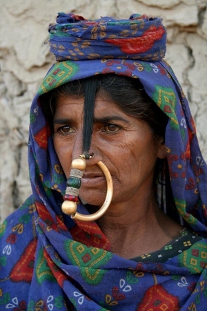 Bridal nathiya (Свадебная нати) — это индийское украшение для носа, которое традиционно носят невесты в день свадьбы, XXI век / Женщина из племени джатов с пирсингом в носу, RURO photography, 2009 год