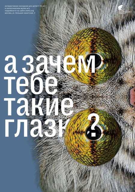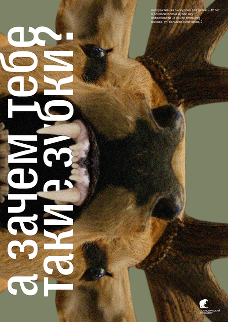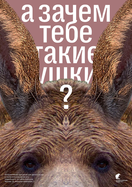 The idea of the posters came after a visit to the Zoological Museum of the MGU. The museum features thousands of artifacts and stuffed animals, including old stuffies, which have become somewhat frightening over time. The posters show animals with other people’s elements (e.g., a bear with hare ears), supplemented by phrases referring to children’s fairy tale characters. These posters create an atmosphere of mystery and interest that will attract the interest of young visitors to the museum