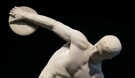 Мирон. Дискобол. Римская копия с греческого оригинала, ок. 460 г. до н. э. Дворец Массимо, Рим.