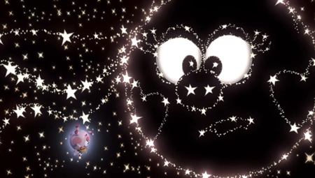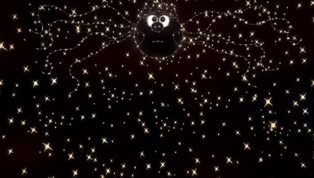 Образ Вселенной соткан из звезд, и она величественна и велика, о чем говорит Нюше. Та рассказывает о диете, и Вселенная внемлет совету.