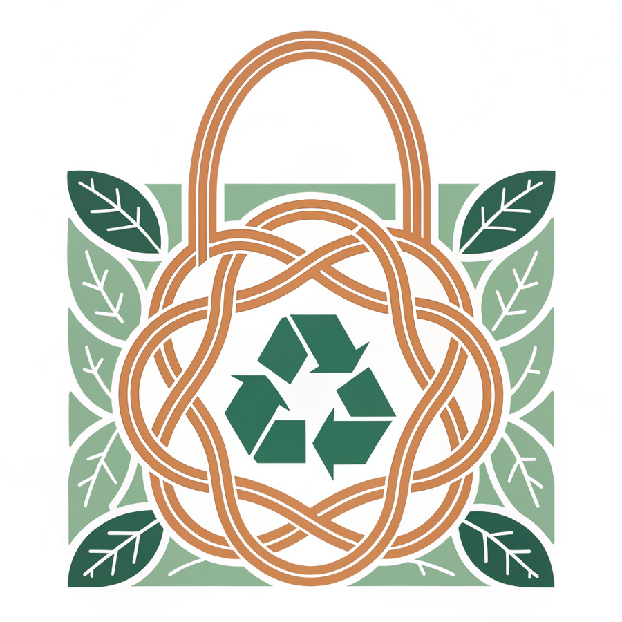 промт: conceptual logo symbol representing transformation: plastic packaging morphing into woven fabric, clean lines, single continuous line art, modern minimalist style, monochromatic --ar 1:1 --style raw --no text