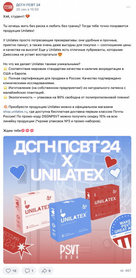 ЦА: Студенты творческих направлений — дизайнеры, аниматоры, художники, музыканты, менеджеры в креативных индустриях (от музыки до ивентов). Возраст от 17 до 24 Суммарная аудитория: 4000 человек подписчиков в VK-группе: 1500 человек (±500 человек в тг-канале) Открыток-приглашений: 800+ штук Плакатов в корпусах: 30+ штук