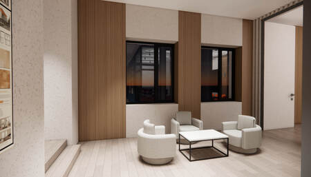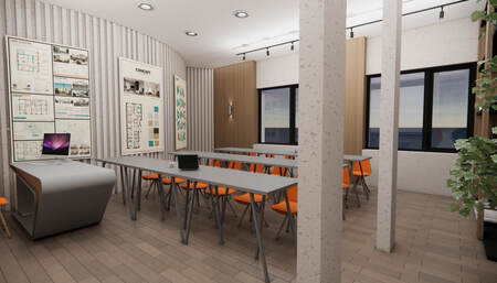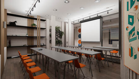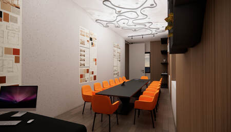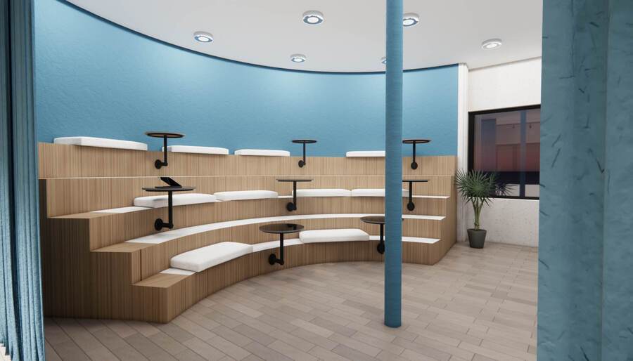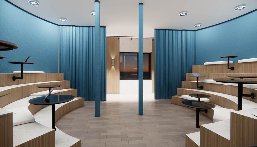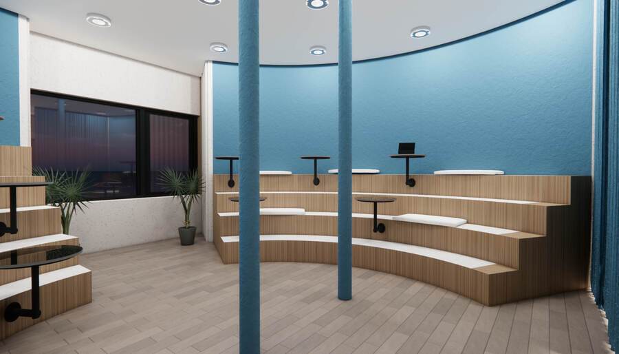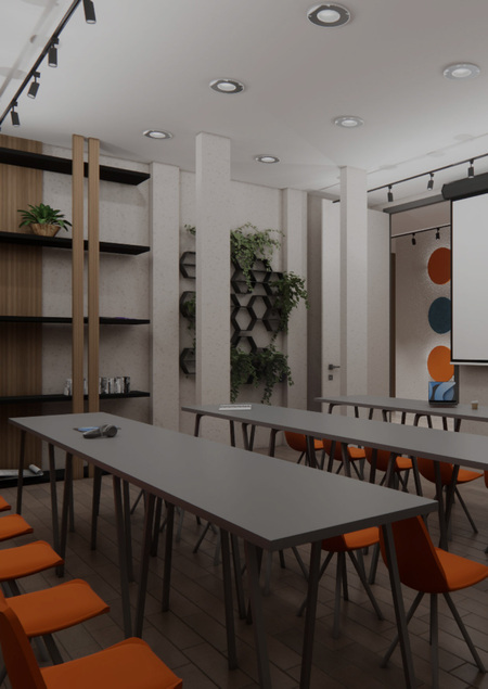 Дизайн проект был сделал для уютного времени препровождения во время учебы. Основной идеей стало то чтобы студенты учились в комфорте. В кластере используется материалы: дерево, светлые цвета, акцентные цвета, зелень и стекло чтобы увеличить пространство, так же на стенах присутствуют постеры и декоративные элементы.