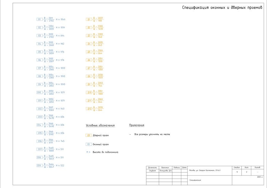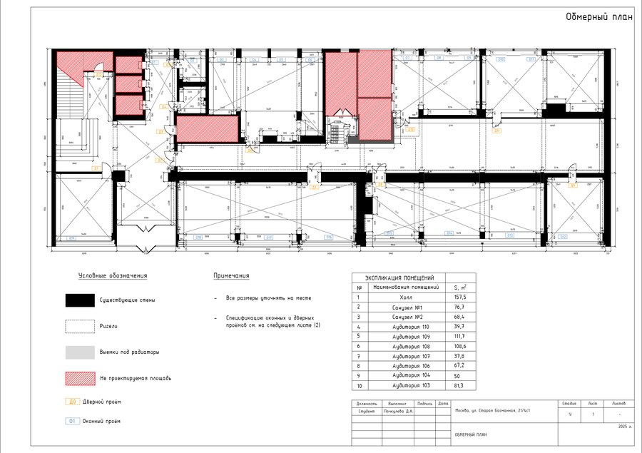 Обменная практика: Обмерный план/Спецификация дверных и оконных проемов/план потолка в кластере Школы Дизайна на Старой Басманной 24/4с1