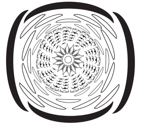 На представленной схеме мы можем увидеть, как выглядел бы реальный цветок в горизонтальном срезе. Схема упрощена, однако по ним видно и центр самого цветка, как расположены его лепестки и его возможные оси симметрии.