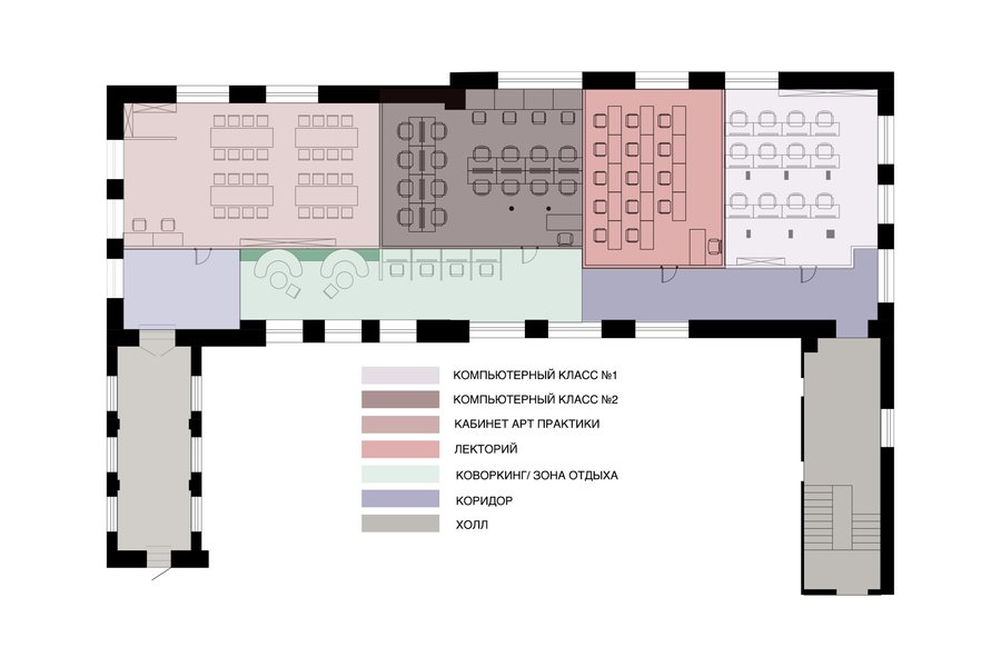 Проект интерьера студенческого кластера представляет собой пространство, созданное для вдохновения и творческой самореализации. Его дизайн направлен на то, чтобы помочь студентам креативных направлений раскрывать свой потенциал и эффективно работать над собственными проектами.