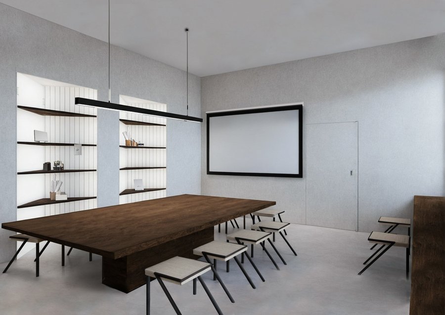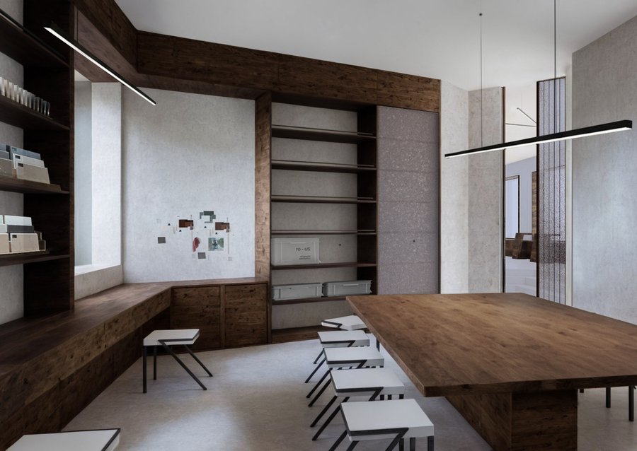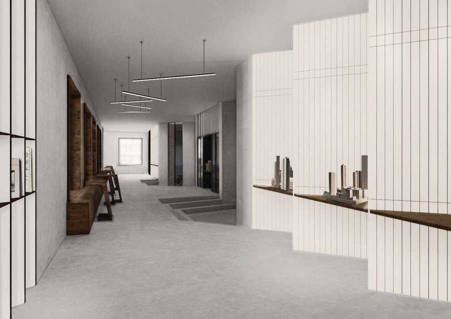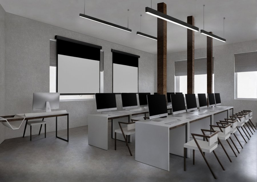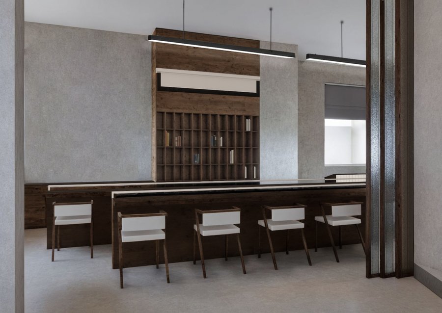 Общая зона включает в себя выставочную зону, которая сразу же встречает посетителей при входе. Здесь представлены лучшие макеты, арт-объекты и работы студентов. Кроме того, в этом пространстве расположена мини-библиотека, где собраны лучшие книги и зины, выполненные самими учениками, а также кофе-поинт для комфортного общения и работы.