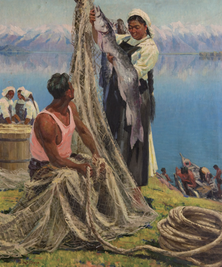 Ц. Будбазар/Рыбаки озера/Цагаан-Нуур. 1961//Б. Пурэвсух/ Дорогой борьбы/ 1984