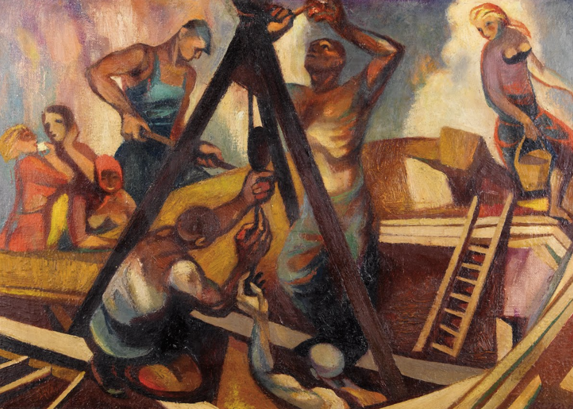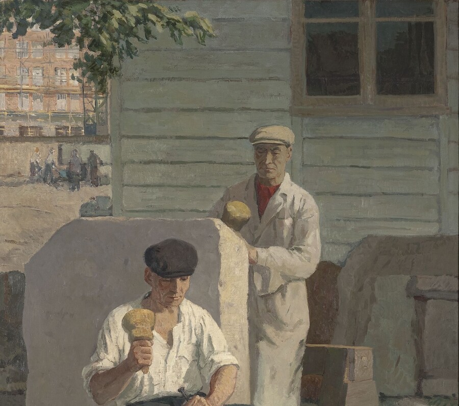 Кобздей Александр/Женщины-каменщики/1950//Кобздей Александр/Каменщики/1952//Кобздей Александр/Портрет Брониславы Урбанович/1950 — фрагменты