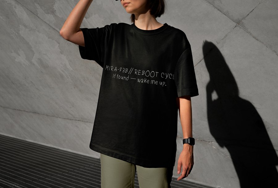 Линейка мерча для будущего графического романа «Протокол 73В» в жанре психологический хоррор и сай-фай с элементами посттравмы.