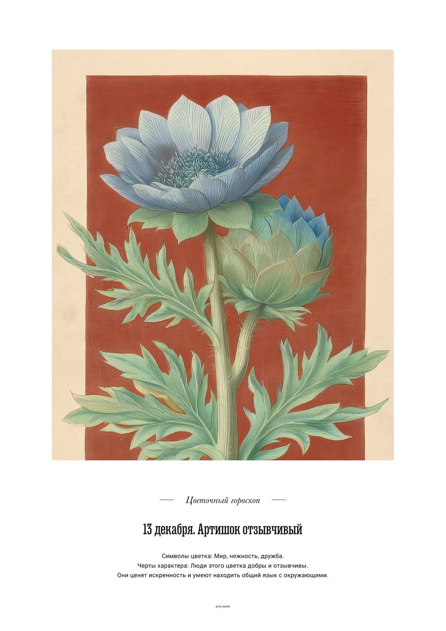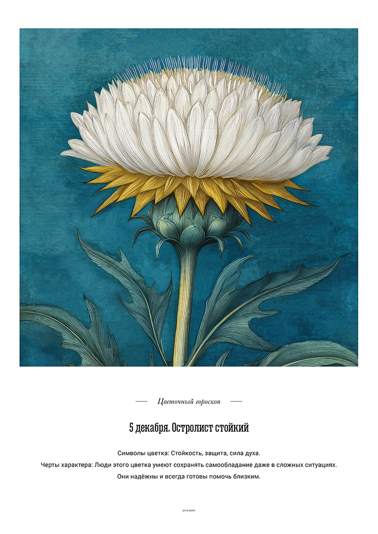 «Каждому дню современного календарного года соответствует определённый вид древнего растения (чаще всего — цветка), предположительно обладающий собственным „характером“ или поведенческой метафорикой. Считается, что родившийся в этот день человек наследует качества, приписываемые „своему“ растению, а также его предполагаемую роль в природно-социальной структуре» — с показной серьёзностью утверждают авторы проекта. Но при этом явно «подмигивают» за кадром, не особо скрывая, что «Цветочный гороскоп» — это ИИ-мистификация.