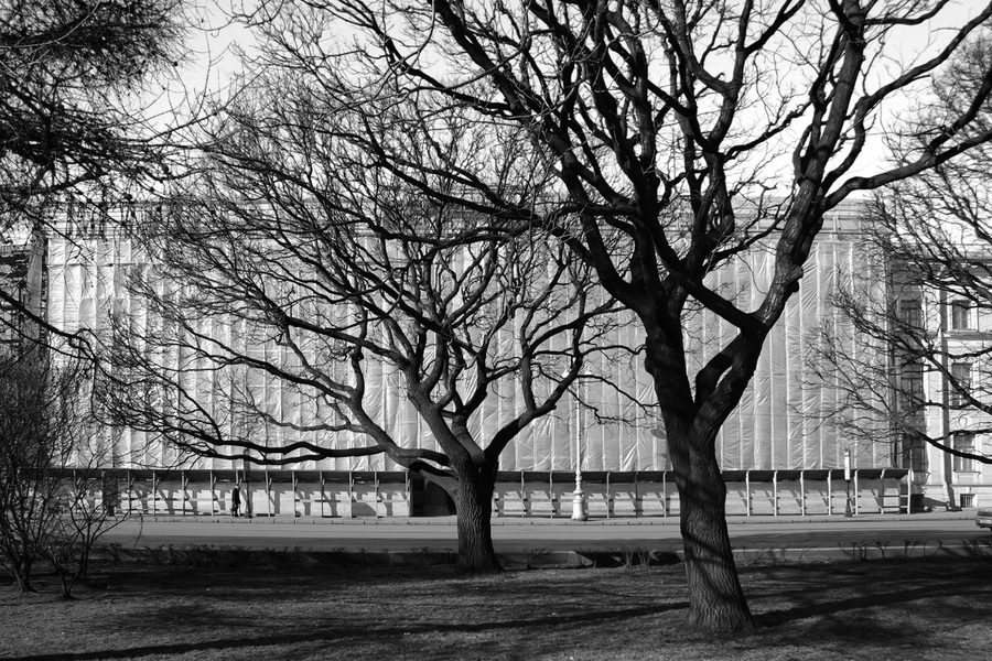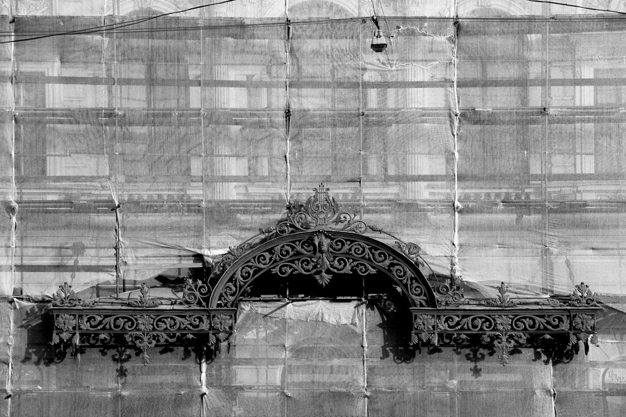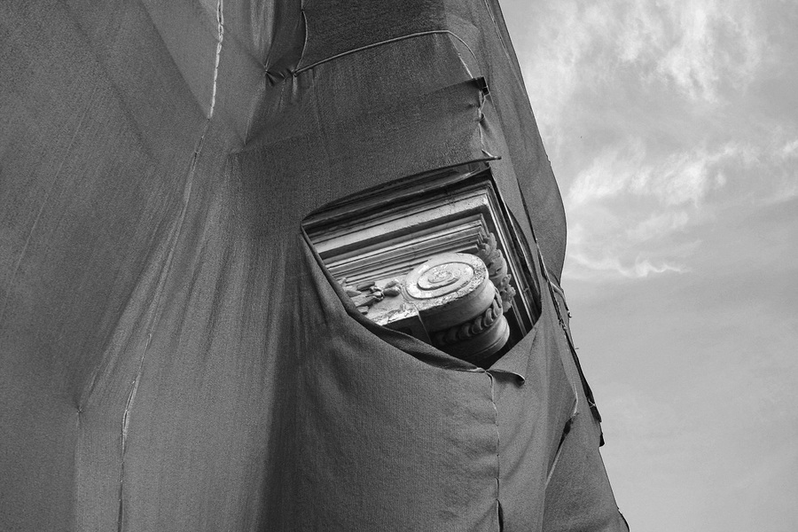 Большое видится на расстоянии, и, если умозрительно отдалиться от города на высоту птичьего полета, то строительные леса выглядели бы масштабной художественно-архитектурной акцией. На время они скрывали под собой красоты XVIII и XIX веков, выстреливая манифестом новой архитектуры. Многие из этих кадров уже сейчас стали историческим свидетельством трансформаций городской среды начала XXI века.
