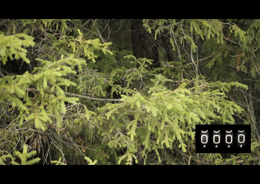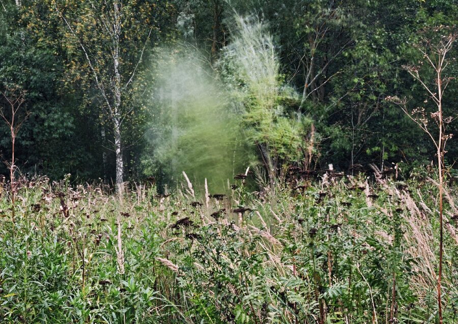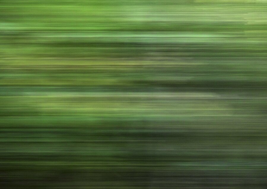 Линейное перемещение зрителя по границам леса не позволяет различить детали, оставляя только движение, запечатлённое камерой. Оно превращается в простую зелёную линию, направление, вектор скорости блуждающего объекта. Инсталляция состоит из фотографий, встроенных в специально сконструированные объекты, которые навязывают зрителю различные темпы и способы просмотра.