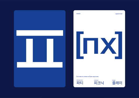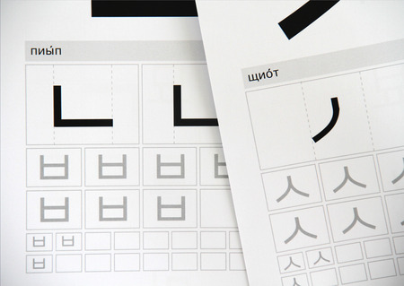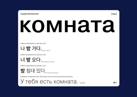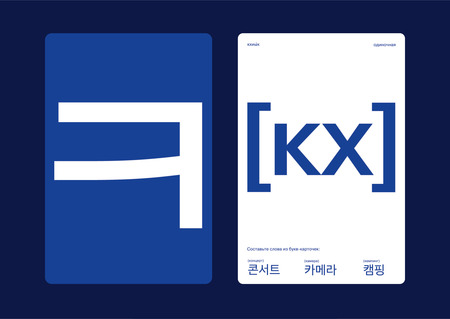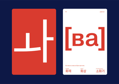 Вторая часть — дидактические карточки. Она состоит из двух блоков: карточки с буквами и карточки со словами. В карточках с буквами представлены все символы корейского алфавита с транскрипцией на русском и примерами чтения. Дополнительные упражнения помогают составить простые слова из букв-карт.