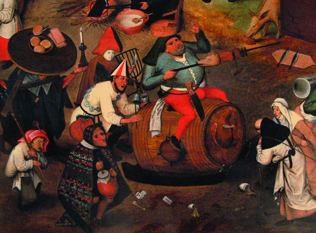 Продолжая говорить об изображениях повседневности крестьян, стоит упомянуть полотна, на которых ключевым сюжетом является праздник. Одним из таких художественных произведений является «Битва Великого Поста и Масленицы», написанная Питером Брейгелем Старшим с действительно существовавшего в Голландии празднества, которое отмечалось в последний день карнавала перед Великим Постом. Используя уже знакомый прием многообразия, художник показывает событие, как что-то очень важное для крестьян.